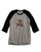 Heather Grey And Black Three Quarter Sleeve Raglan T-Shirt * Black Sleeves With Heather Grey Body * Crew Neck With Black Rib Knit Collar Band * Brown Bull On Tractor Screen Print On Front