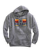 Guy's Heather Grey Brushed Fleece Knit Hooded Sweatshirt With Twill Tape Drawstring Closure * Front Kangaroo Pocket * Rib Knit Waistband And Cuffs * "Tin Haul Company" Star And Stripes Retro Patch Look Screen Print On Front