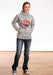 Gals Heather Grey Fleece Knit Hooded Sweatshirt * Asymmetrical Crossover Jersey Lined Hood W/3 Button Closure * Raglan Sleeves * Rib Knit Waistband And Cuffs * Front Kangaroo Pocket * "Tin Haul" Multi Color Circular Screen Print On Front