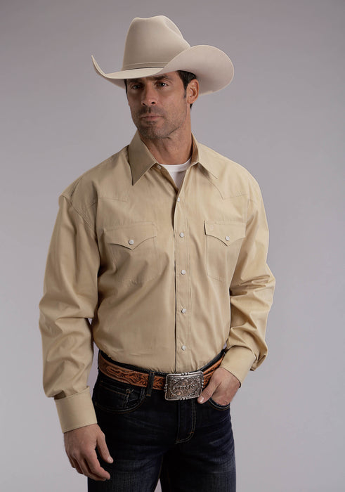 Men's Stetson Tan Solid Western Long Sleeve Shirt