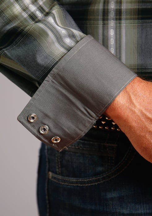 Men's Stetson Granite Dobby Plaid Western Long Sleeve Shirt