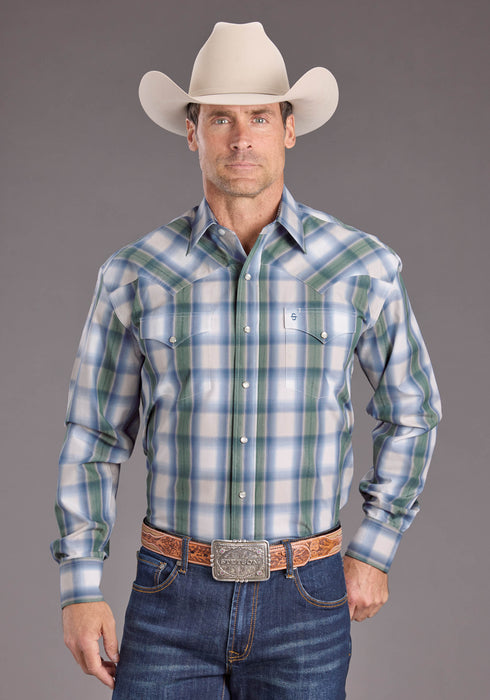 Stetson YD Plaid W/Dobby * 1 Pt Ultra Deep Curved Back Yoke * Stetson "S" Emb * "Stetson" Emb On Rt Sleeve Placket * Contrast Inside Trim * 3 Snap Cuff * Classic Snap Front Featuring Logo Pearl Snaps