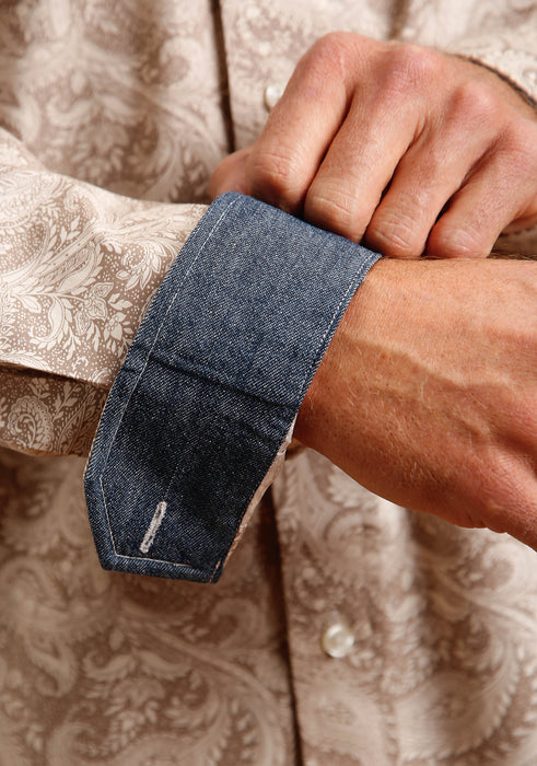 Paisley Print On Cotton Poplin * Straight Back Yoke W/Pleat * Stetson "S" Emb * "Stetson" Emb On Rt Slv Placket * Denim Inside Trim * 2 Btn Adj Mitered Edge Cuff * Classic Btn Front Featuring Stacked Logo Btns