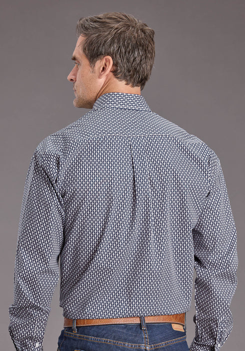 Allover Print On Cotton Poplin * Straight Back Yoke W/Pleat * Stetson "S" Emb * "Stetson" Emb On Rt Slv Placket * Denim Inside Trim * 2 Btn Adj Mitered Edge Cuff * Classic Btn Front Featuring Stacked Logo Btns