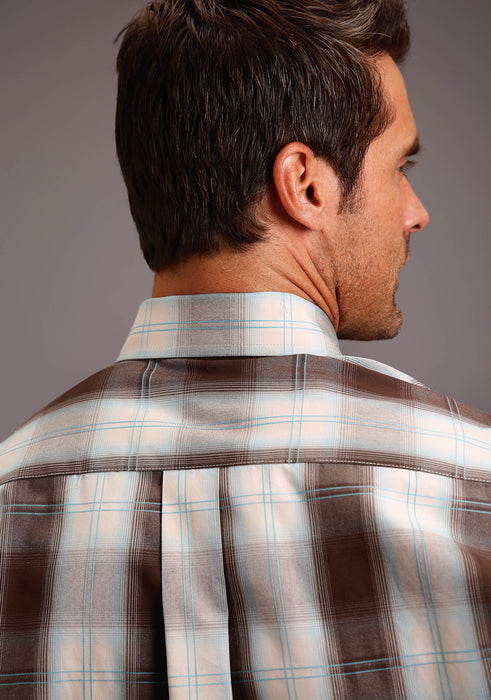 Men's Stetson Y/D Plaid W/Satin Stripe * Straight Bk Yoke W/Pleat * Contrast Inside Trim * Stetson "S" Emb * "Stetson" Emb On Right Slv Placket * 2 Btn Adj Mitered Edge Cuff * Classic Btn Front Featuring Logo Btns