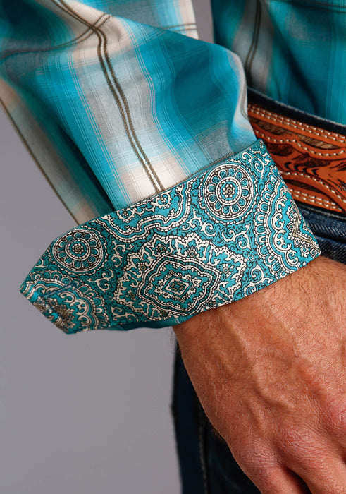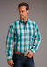 Stetson Teal Plaid w/ Satin Stitch Long Sleeve Button Up