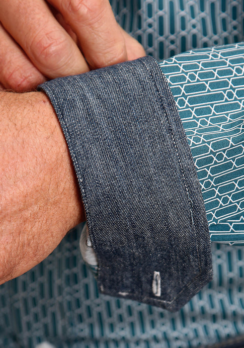 Allover Print On Cotton Poplin * Straight Back Yoke W/Pleat * Stetson "S" Emb * "Stetson" Emb On Right Sleeve Placket * Denim Inside Trim * 2 Btn Adjustable Mitered Edge Cuff * Classics Btn Frt Featuring Stetson Logo Stacked Pearl Btns