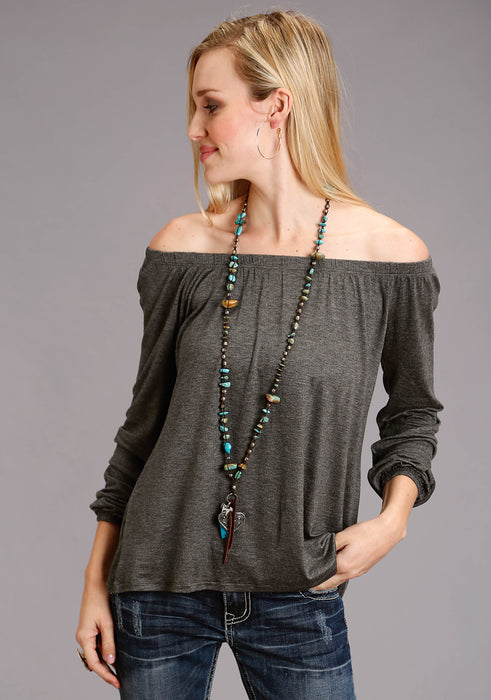 Heathered Jersey Knit Off Shoulder Top * Elastic Top And Cuffs * Raglan Sleeves *