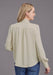 Women's Cream Poly Rayon Satin Long Sleeve Blouse * V-Neck W/Self Tie Collar & Full Self Covered Button Frt Placket * Straight Frt & Bck Yokes W/Gathers Below Buttons * Long Sleeves Gathered Into Shoulders & Deep Cuffs W/Self Covered Btns