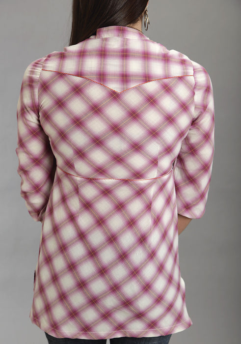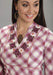 Lovely New Tunic In Striking Pink Plaid Cotton Lawn * Stand Collar W/V-Neck * Lavish Embroidery On Front, Back & Hemline * Embroidery Stitch For Added Detail * Waist Seam W/Darts * 3/4 Sleeve W/Elastic Opening *