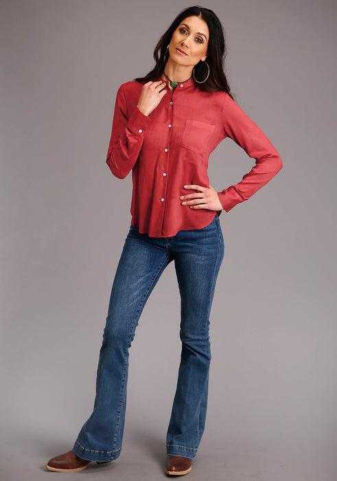 Women's Cinnamon Rayon Herringbone Blouse * Button Down Blouse * Long Sleeves With Deep Cuffs And Single Button Closure * Single Point Slight Curve Back Yoke With Pleats * Single Point Left Chest Pocket
