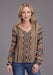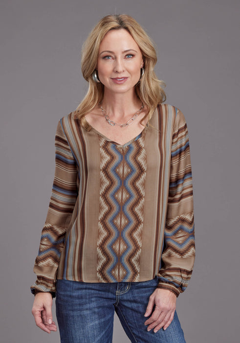 Women's "Sand Serape" Print Herringbone Rayon Blouse * V-Neckline * Straight Back Yoke With Gathers Below * Blouson Sleeve With Narrow Single Button Cuff