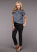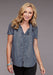 Women's Lyocel Denim Twill Short Sleeve Button Up Blouse * Rounded Front And Back Yokes With Ruffles * Collar With Self Ties Open To Yoke * Self Covered Buttons *