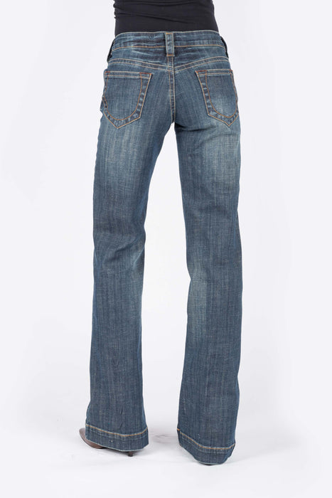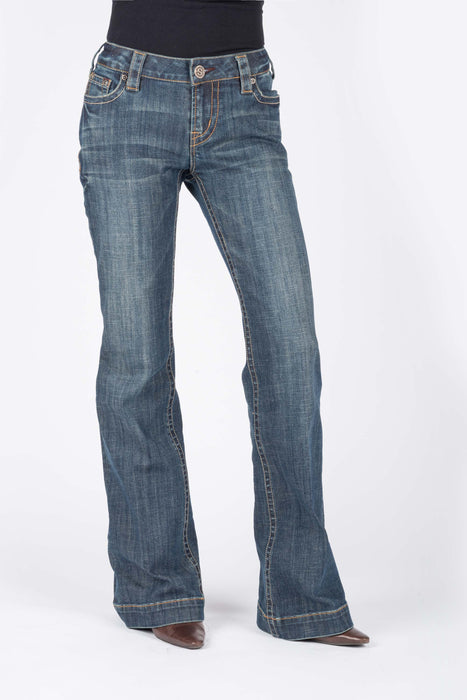 Trouser Style Western Jean * Sits Just Below The Waist * Moderately Fit Thigh W/Flared Leg * 2 Button Contour Waist Band * Decorative Stitching On Back Pockets * Stetson Branded Buttons And Zippers * Gentle Hand Sand *