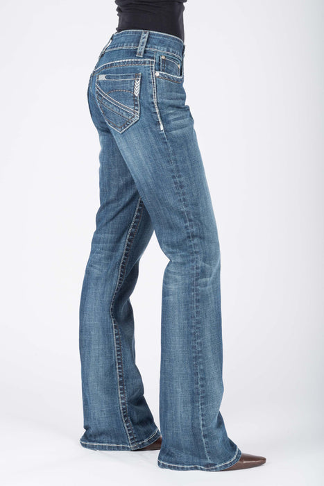 Trouser Style Western Jean * Sits Just Below The Waist * Moderately Fit Thigh W/Flared Leg * 2 Button Contour Waist Band * Decorative Aztec 11-04 Stitching On Back Pockets * Stetson Branded Buttons And Zippers * Gentle Hand Sand *
