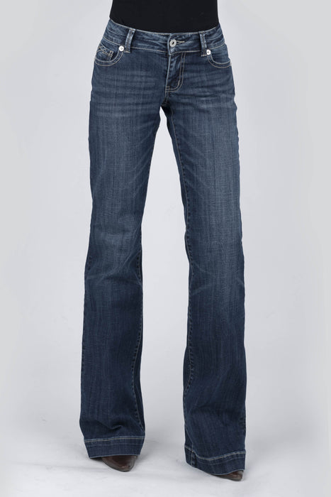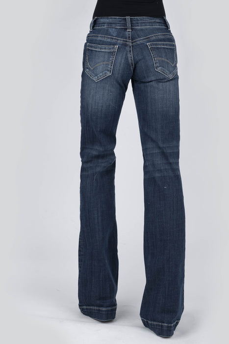 Trouser Style Wstrn Jean * Sits Just Below Waist * Moderately Fit Thigh W/Flare Leg Opn * 5 Pckt Style * Contour Waistband * Wide Hem * Stetson Branded Btns, Rivets, & Zipper * Curved V Emb On Bk Pckt * Gentle Hand Sanding & Whisker Detail