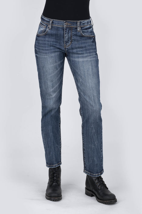 Boyfriend Fit Jean * Sits Mid Waist * Relaxed Fit Through Thigh and Knee with Slightly Tapered Leg Opening * 5 Pocket Style * Stetson Branded Buttons, Rivets, and Zipper * Pieced Back Pocket * Gentle Whisker and Hand Sanding Details *