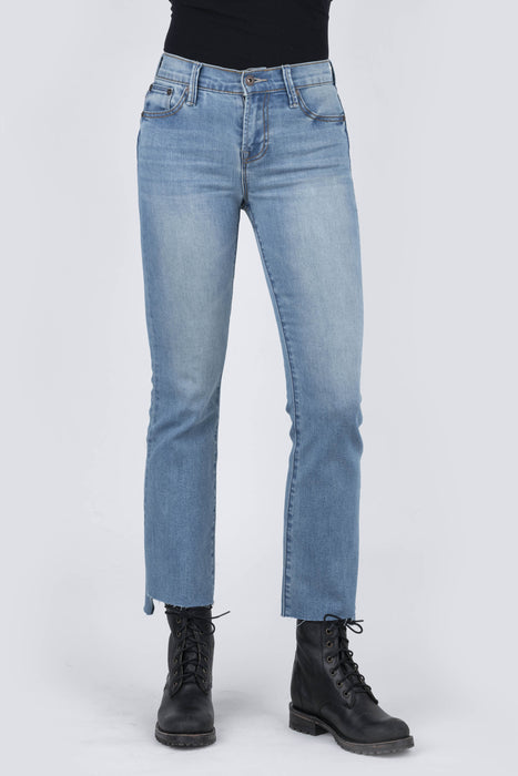 High Waist Flare Western Jean * Sits at Waist * Slim Fit Through Thigh and Knee with Flare Leg Opening * 5 Pocket Style * Raw Edge Hem with Cut Off Detail * Stetson Branded Buttons, Rivets, and Zipper * Plain Back Pocket * Hand Sanding *