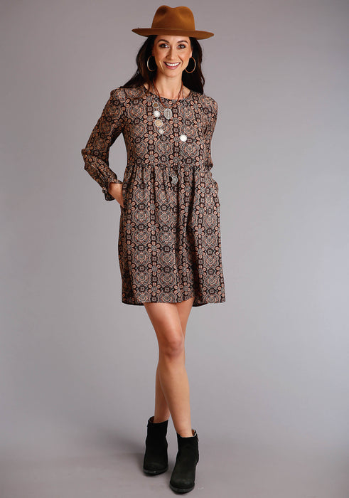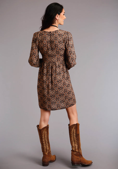 Women's "Prairie Paisley" Print Rayon Dress * Scoop Neck * Drop Waist * Sleeves Gathered At Shoulders And Cuffs With Ruffles * Skirt Gathered Below Waist * Keyhole Button Closure At Center Back