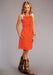 Women's Red Woven Cotton Adjustable Spaghetti Strap Dress * Eyelet And Cutout Lace Details At Top Of Front Bodice And Bottom Hem * Elasticized Waistband * Side Seam Pockets