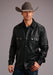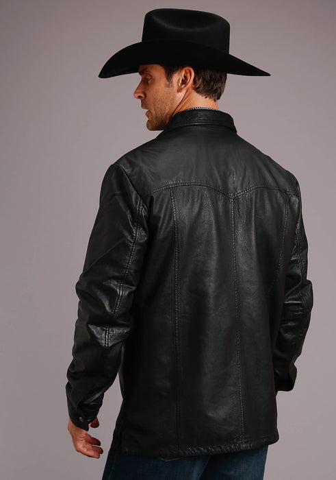 Black Leather Snap Front Collared Shirt Jacket * Half Lined * Single Point Front And Back Yokes * Single Point Patch Pockets With Double Point Flaps * Antique Silver Snaps Down Front And On Pockets