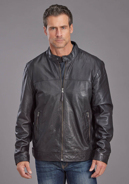 Men's Leather Bomber Style Jacket * Stand Collar * Straight Front And Back Yokes * Angled Zip Hand Pockets * Full Zip Front Closure