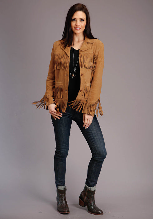 Suede Button Front Jacket * Notch Collar * Straight Front Yokes With Fringe * Single Point Back Yoke * Front Patch Pockets With Fringe * Fringed Sleeves And Bottom Hem * Fully Lined