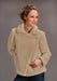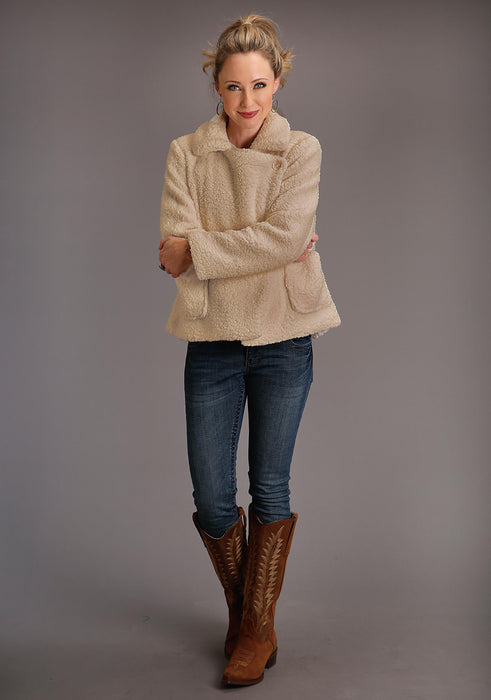 Women's Caramel Fuzzy Oversized Collar Asymetrical Button Jacket * Wearer's Left Flap Buttons Inside Wearer's Right Flap Buttons On Left Chest * 2 Patch Pockets On Front * Fully Lined