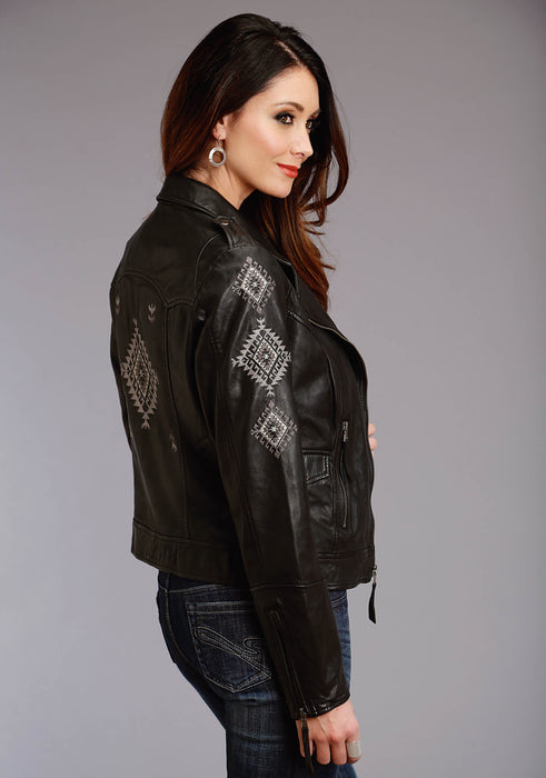 Women's Stetson Black Leather Western Motorcycle Jacket w/ Embroidered Back & Sleeves