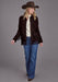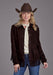 Women's Brown Suede Hip Length Jacket * Large Button Front Closure * Fold Down Collar * Straight Back Yoke With Fringe * Square Front Hand Pockets With Fringe * Fringe At Waist And Sleeve Hem * Fully Lined