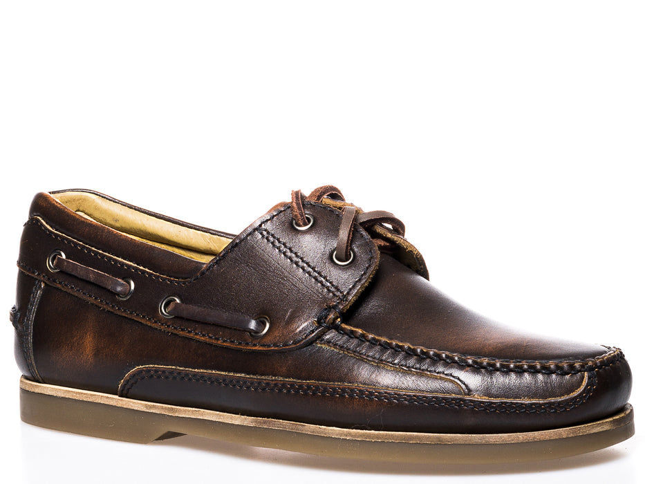BRUSH OFF BROWN LEATHER BOAT SHOE