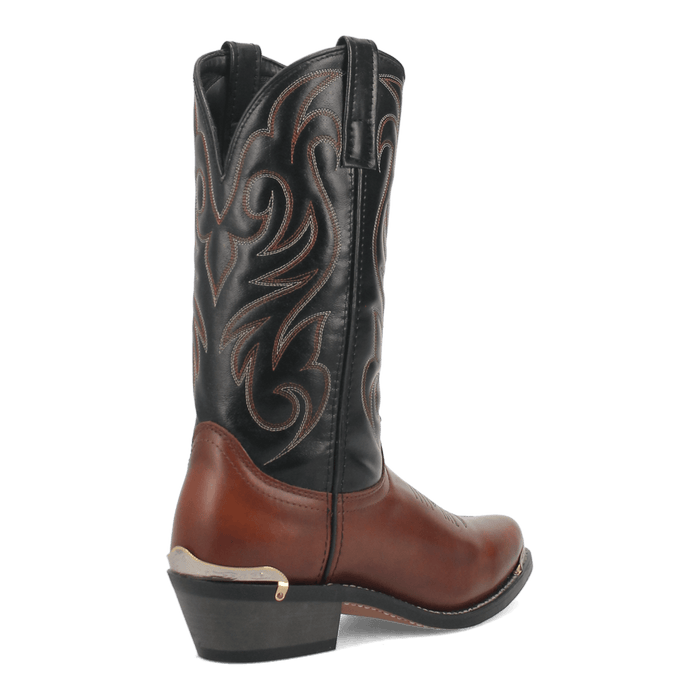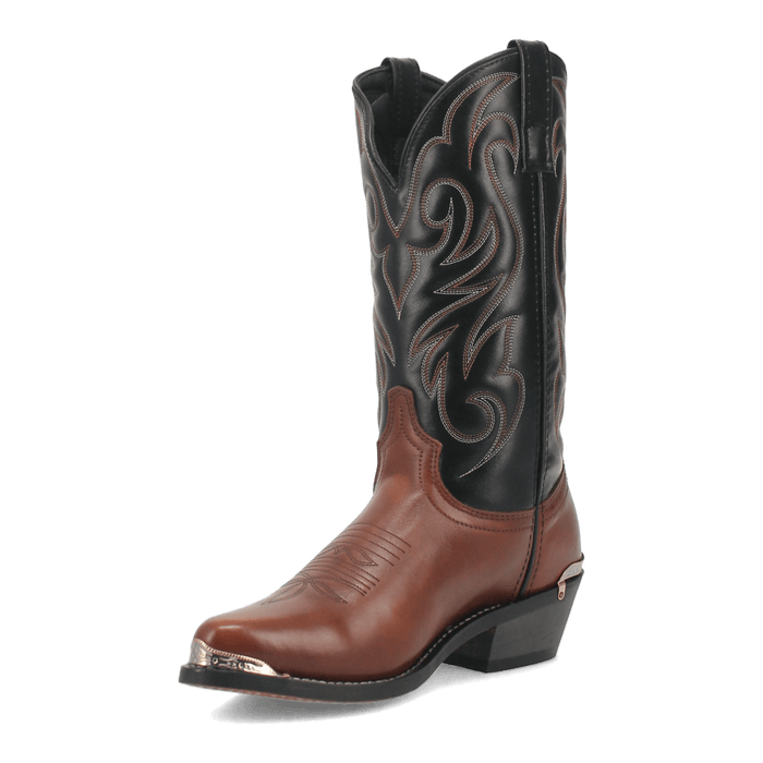 Step up your style with the Nashville boot. This two-toned looker is made with a peanut crunch leather foot. Complete with a black leather-like shaft that's detailed in traditional western stitching and a silver toe and heel rand. Also comes with a Comfort Cushion insole.