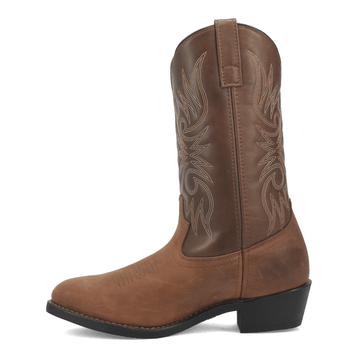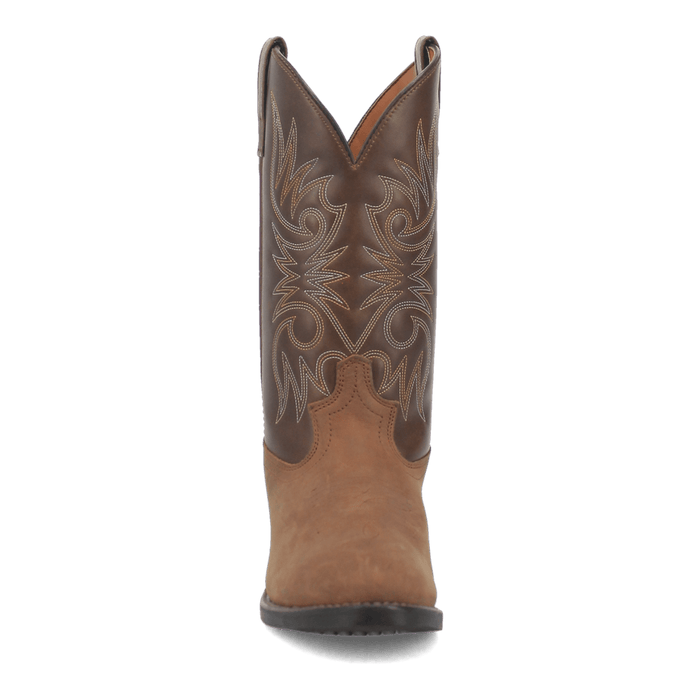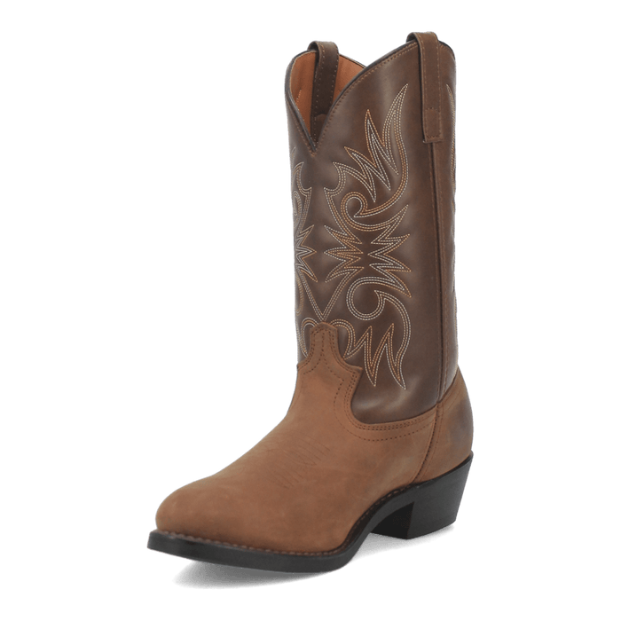 For an authentic western boot that gives you comfort at a great cost, check out Paris. Constructed with a leather foot. The leather-like shaft delivers true cowboy charm with its classic stitching. Round toe, Comfort Cushion insole, and Mini-Rib outsole.