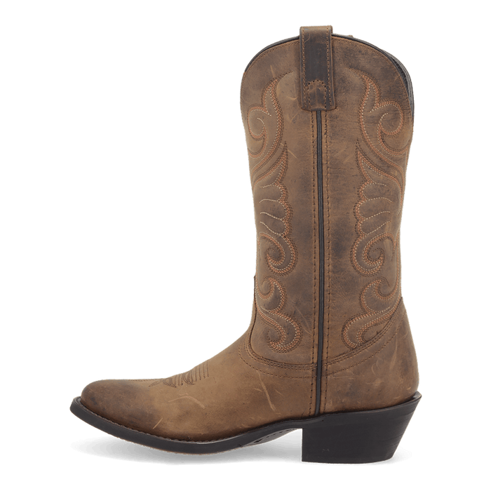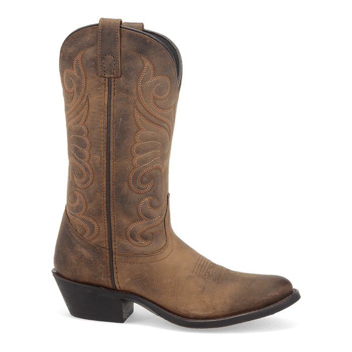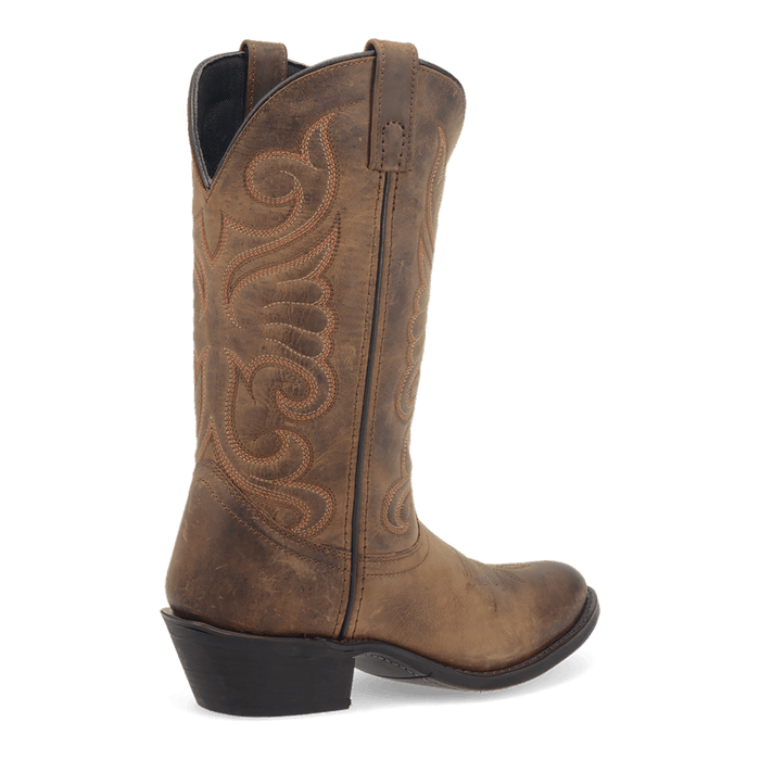 There’s something charming about the classic simplicity of the Bridget boot. Made with distressed leather and features pretty western stitching on the shaft. Comes with a round toe, Hinged Cushion insole, and Laredo Flex Rubber outsole.