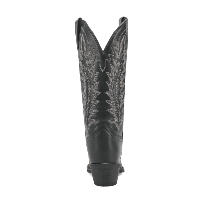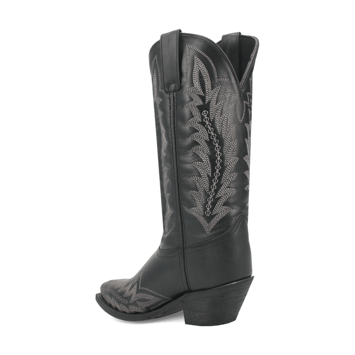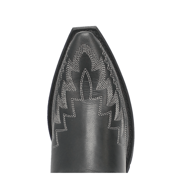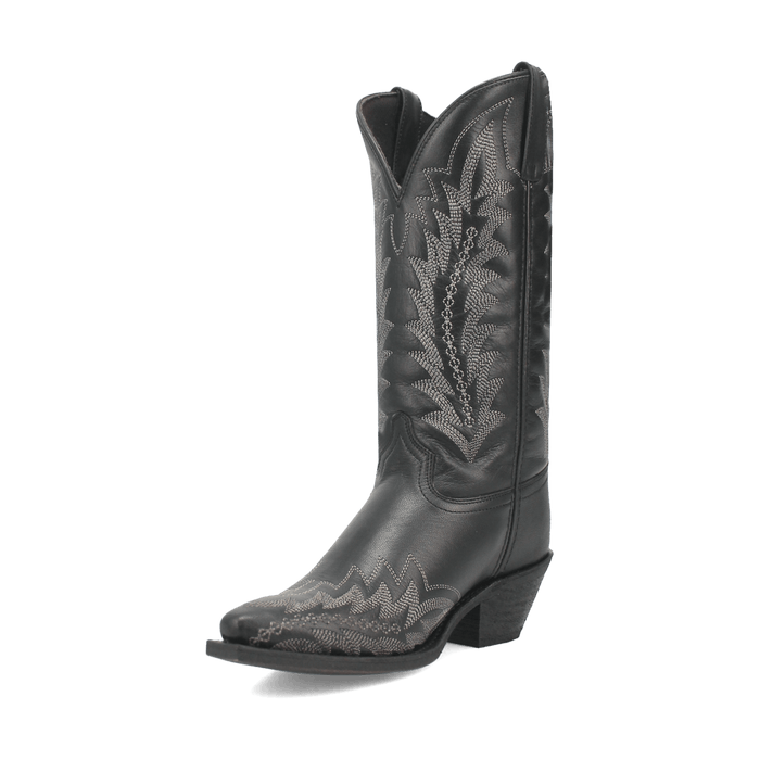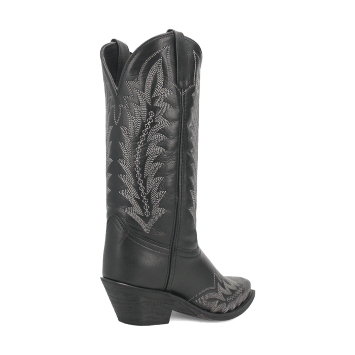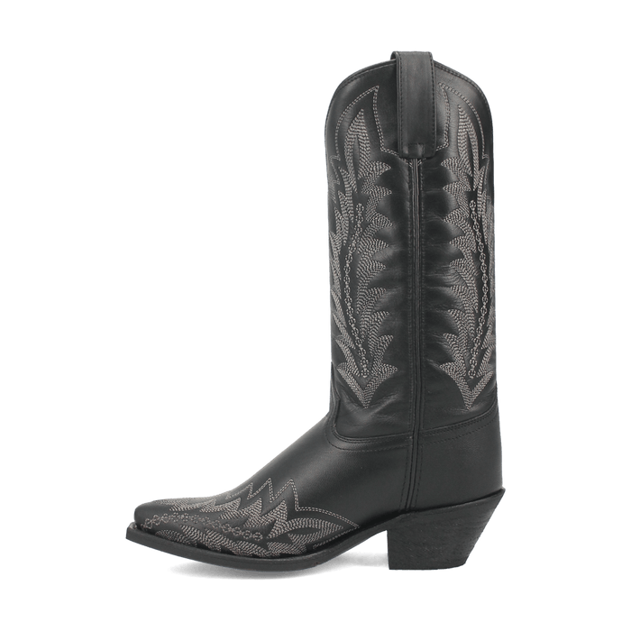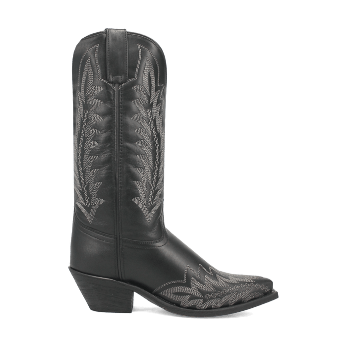 The Emmylee boot in black effortlessly merges Western sophistication with rugged charm. Crafted with intricate Western stitching embellishing the top and foot, it showcases a snip toe, medium cowboy heel, and a cushioned comfort insole for added style and comfort.