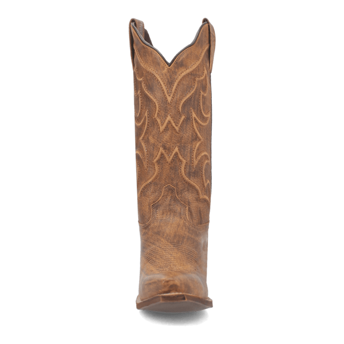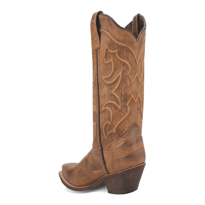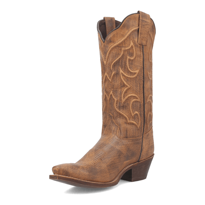 With its distressed, honey-colored leather and fiery stitching, the Reva boot from Laredo is sure to be a sweet addition to any outfit or occasion. Reva comes with a medium cowboy heel, snip toe and removable orthotic insert to ensure you're comfortable dressed up or down.