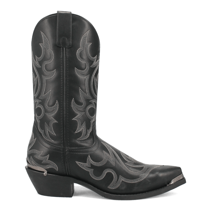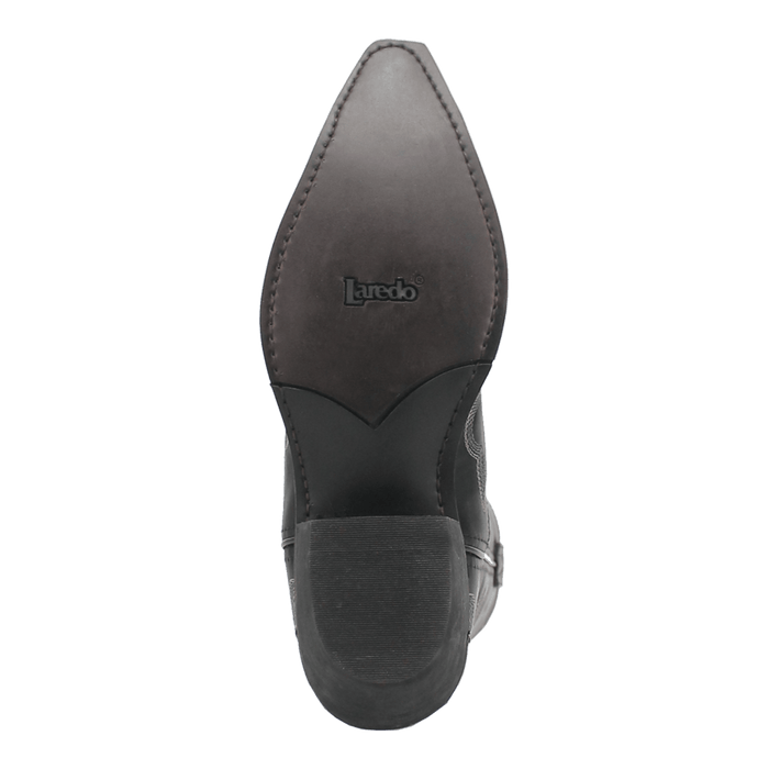 Edgy and ready-made for road or rodeo life, the all-leather Jameson boot from Laredo is tough and hardy. Along with its heel and toe rands, the Jameson asserts dominance with layered stitching, a snip toe, cowboy heel and cushion comfort insole.