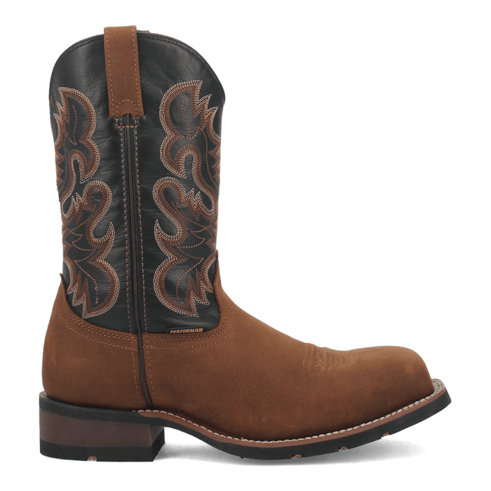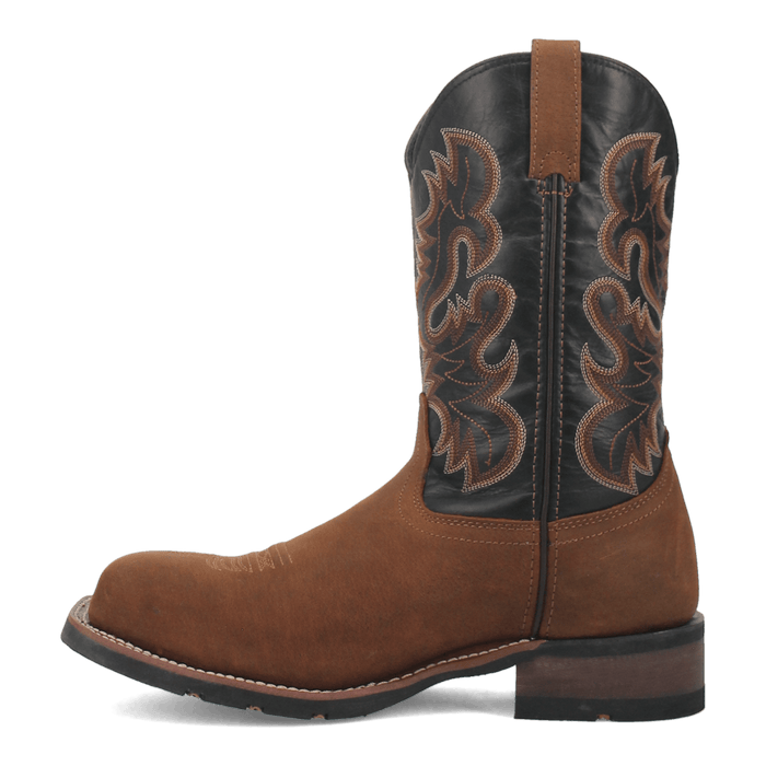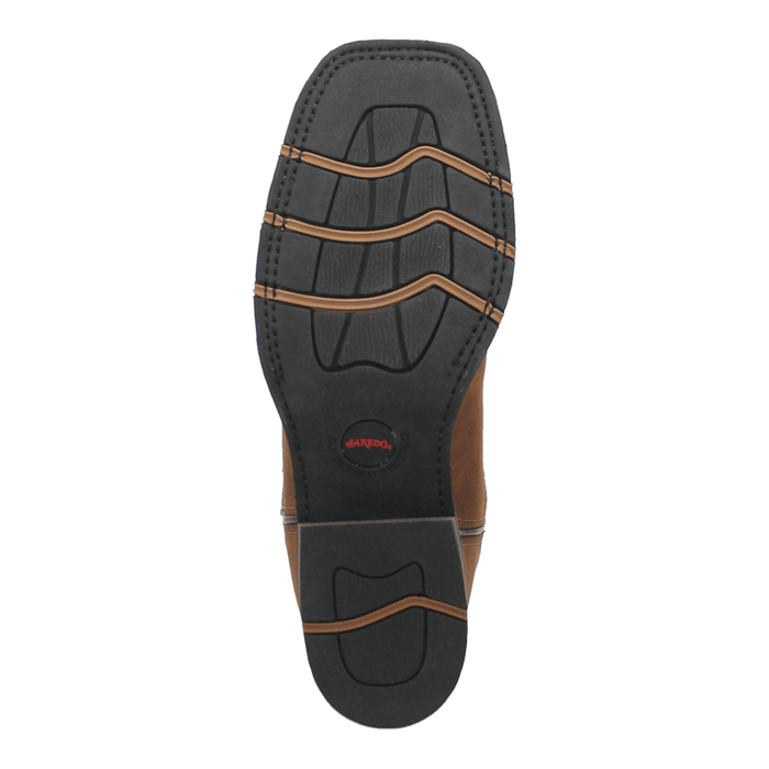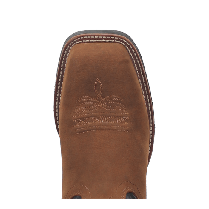 Work like a champ in the Rockwell boot. Built to last with durable, premium leather. Designed to look good with classic western stitching. Comes with a broad square steel toe and a Laredo Removable Open Cell Orthotic insole for added comfort. STEEL TOE and EH rating meets ASTM F2413-18 testing standards. 60 DAY COMFORT GUARANTEE.