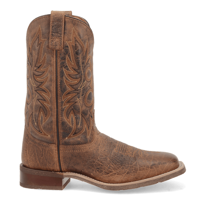 Show your western side with the Durant boot. Constructed with genuine leather and a distressed finish. Classic western stitching on the shaft. Removable Orthotic, broad square toe, double stitched welt, and Cowboy Approved II outsole for traction.