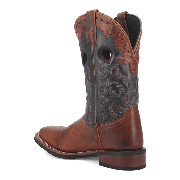 Perfect for the saddle or a walk on the farm, the Laredo Ross boots are going to be your favorite new pair of boots. Starting with the soft leather foot and topped with the contrasting fancy stitched leather upper. Accented with a matching leather collar. Comfort starts with the removable Orthotic. Broad square toe and stockman heel. Long-wearing rubber outsole. The Laredo Ross is comfortable and good looking.