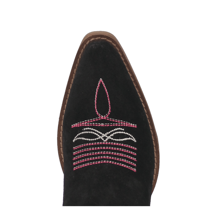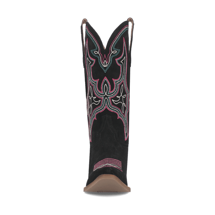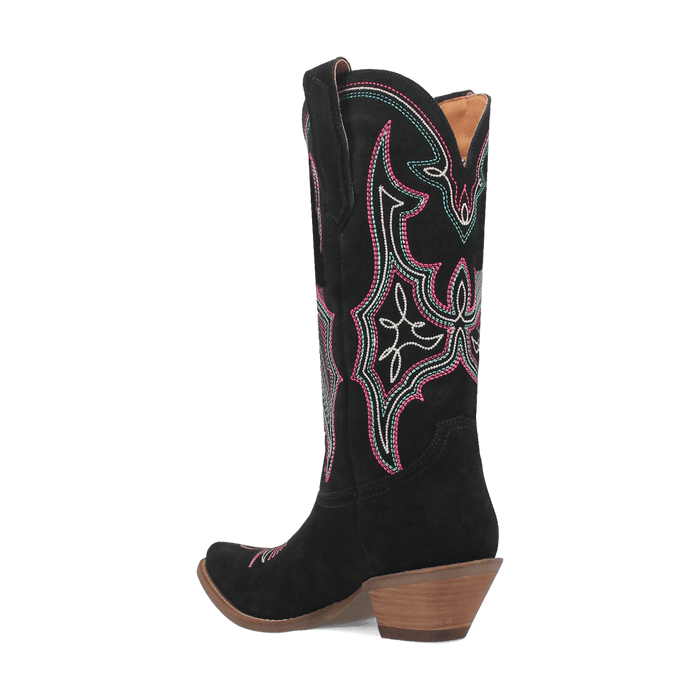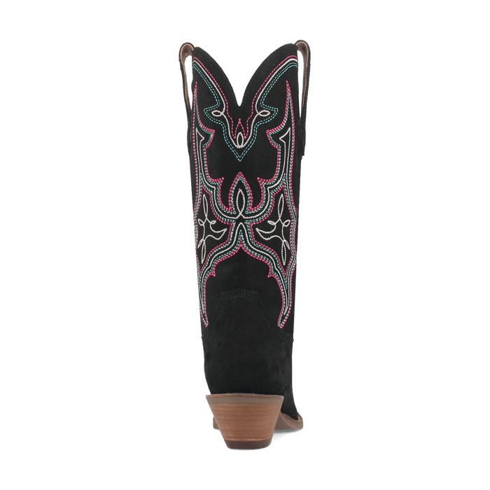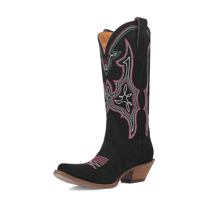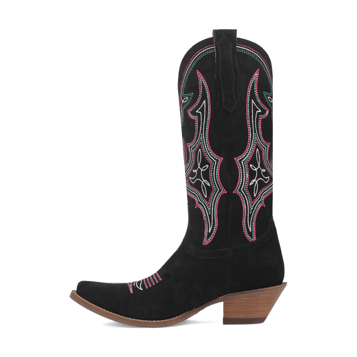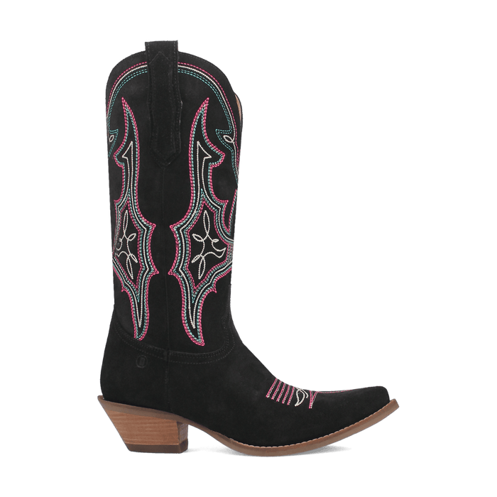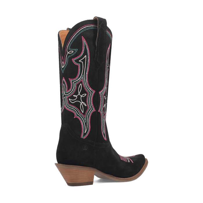 Spice up your wardrobe in the Dingo1969 Hot Sauce leather boot. Standing at 13-inches tall, handcrafted with suede leather adorned with electric stitching for a showstopping design. Elevated with a 2-inch heel, snip toe and cushion comfort insole creating a timeless western silhouette