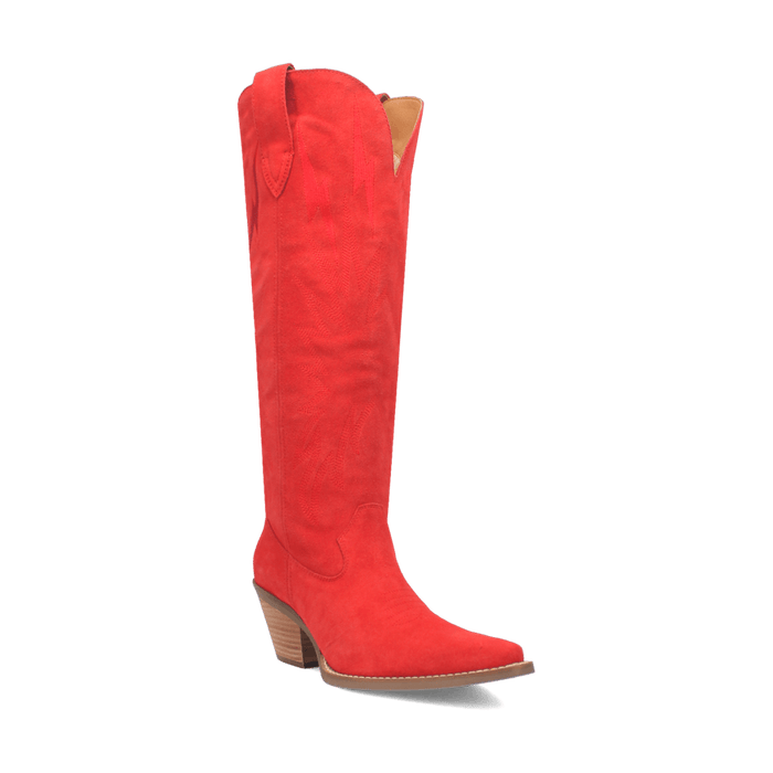 Looking to cause a storm? Put some lightning in your step with the Thunder Road boot from Dingo1969. This 16-inch boot comes in a variety of color options for adding flash to any moment, and with its 2 ½ inch heel and fashion snip toe, the Thunder Road is just electric.