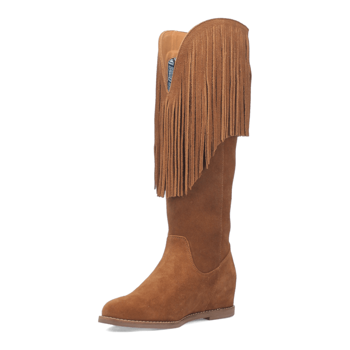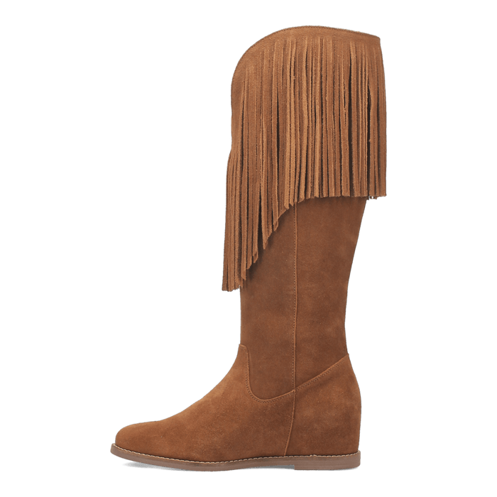 Calling all boho girls! The Hassie is your style with soft suede and fun fringe. The 3" hidden wedge heel gives extra height.