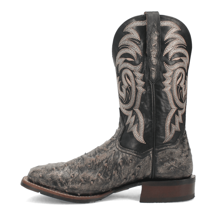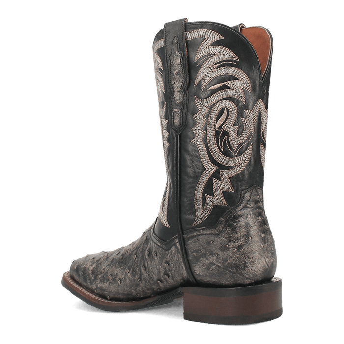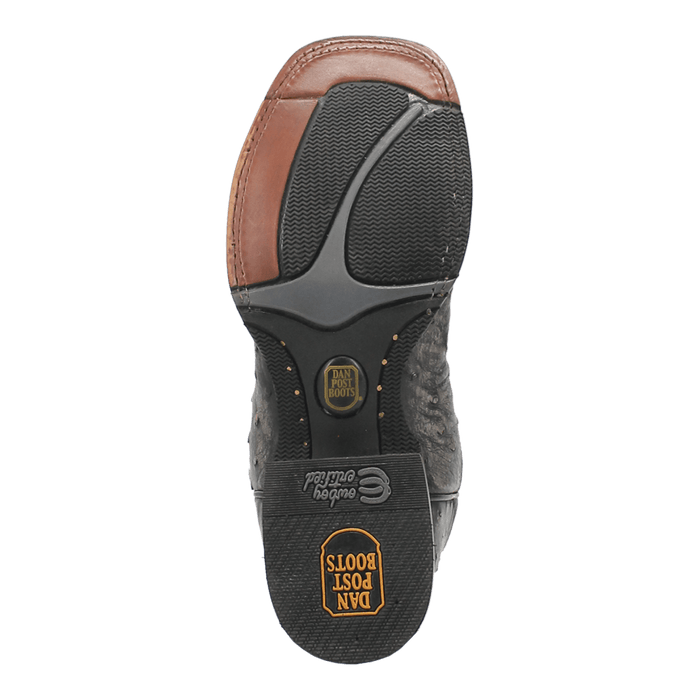 Built for desperados and lawmen alike, the Dillinger full quill ostrich boot in black from Dan Post Cowboy Certified is sure to take your aspirations to the next level. This 11-inch, masterclass in boot construction features a stockman heel, broad square toe, Soft Strike Removable Orthotic and cavvy rubber outsole.