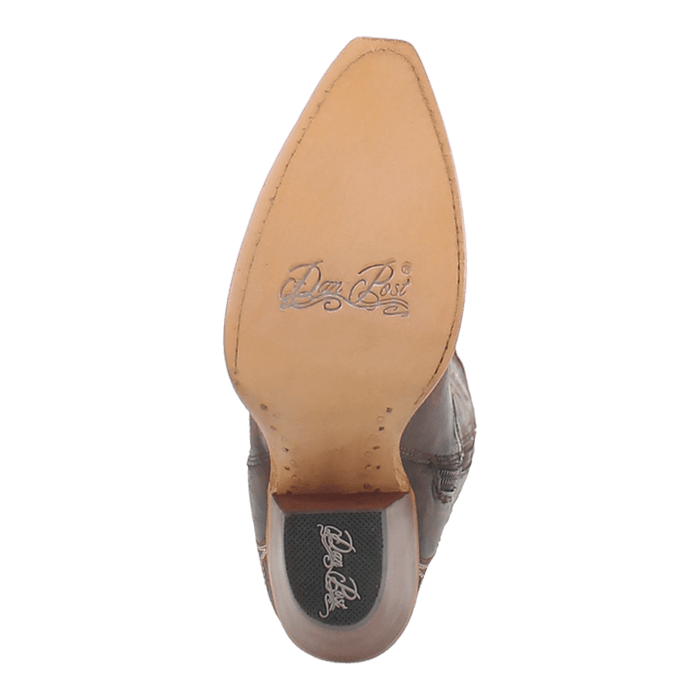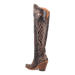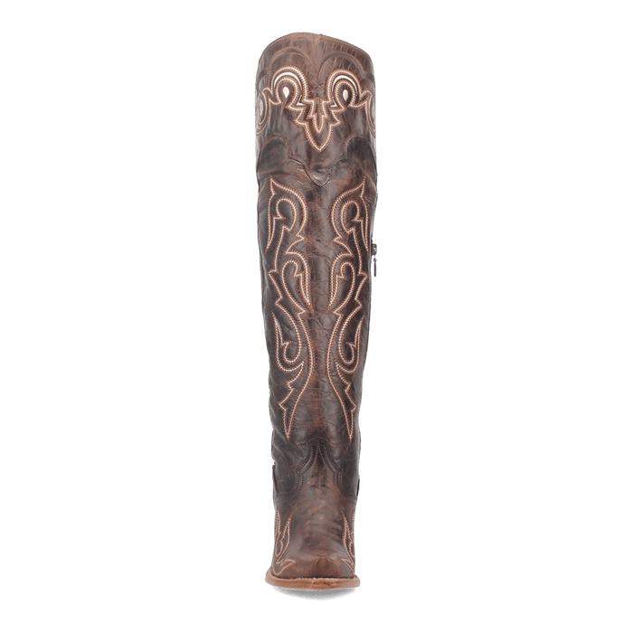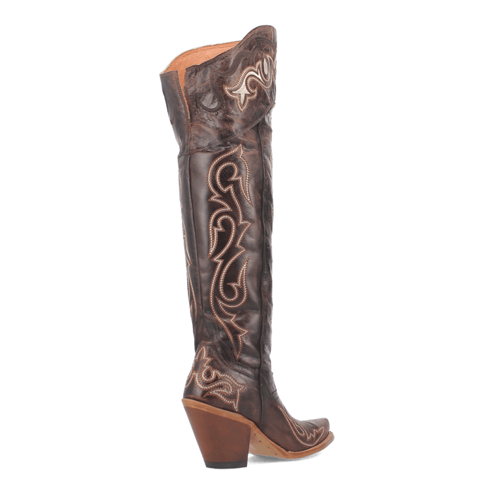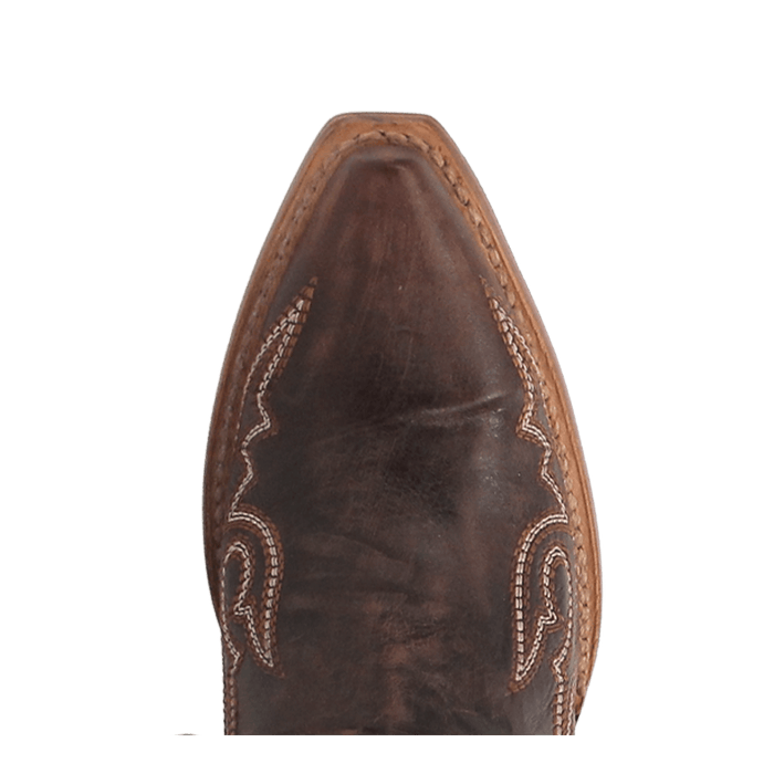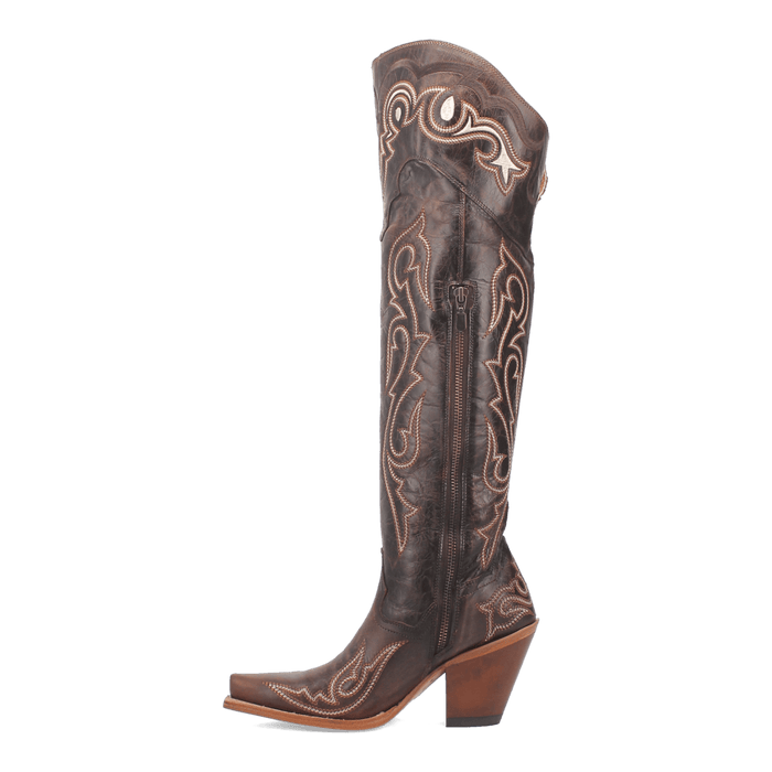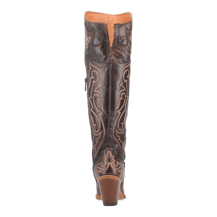 The Dan Post Kommotion is tall (20"), elegant and super sexy. Handcrafted of chocolate leather with contrasting multi-row fancy stitched upper. The high fashion heel make your legs go on forever. Inside zipper for better fit. Get rocking in your Kommotion boots and find the party!