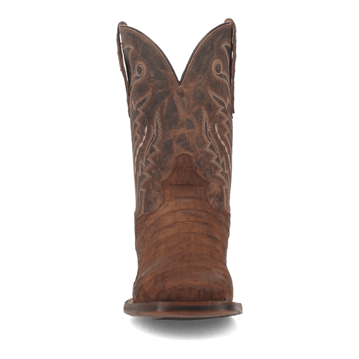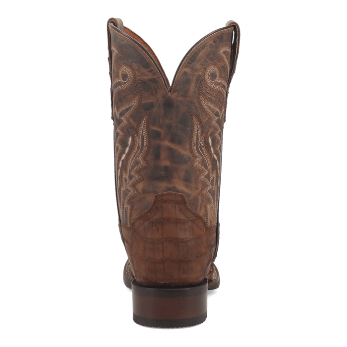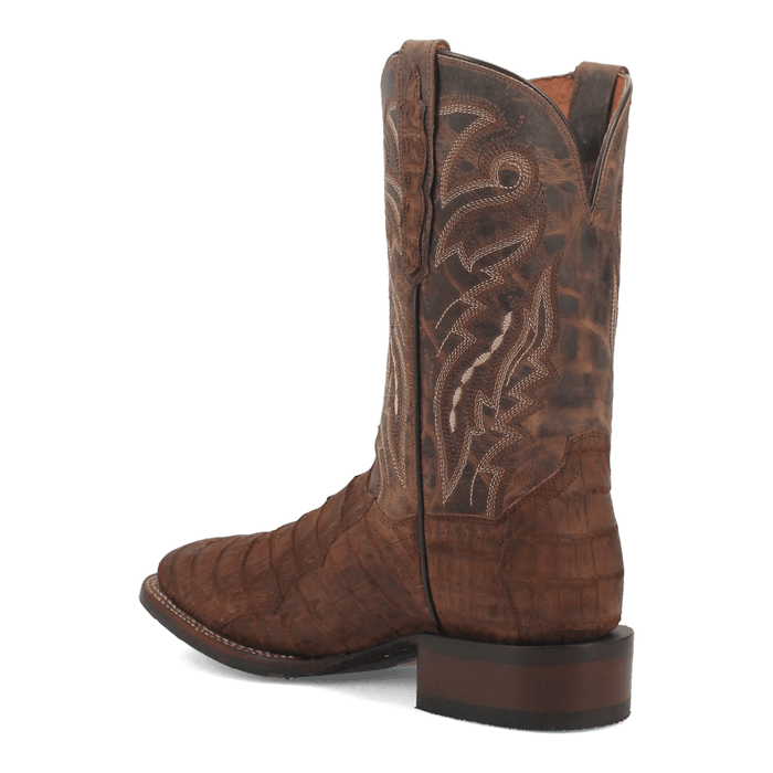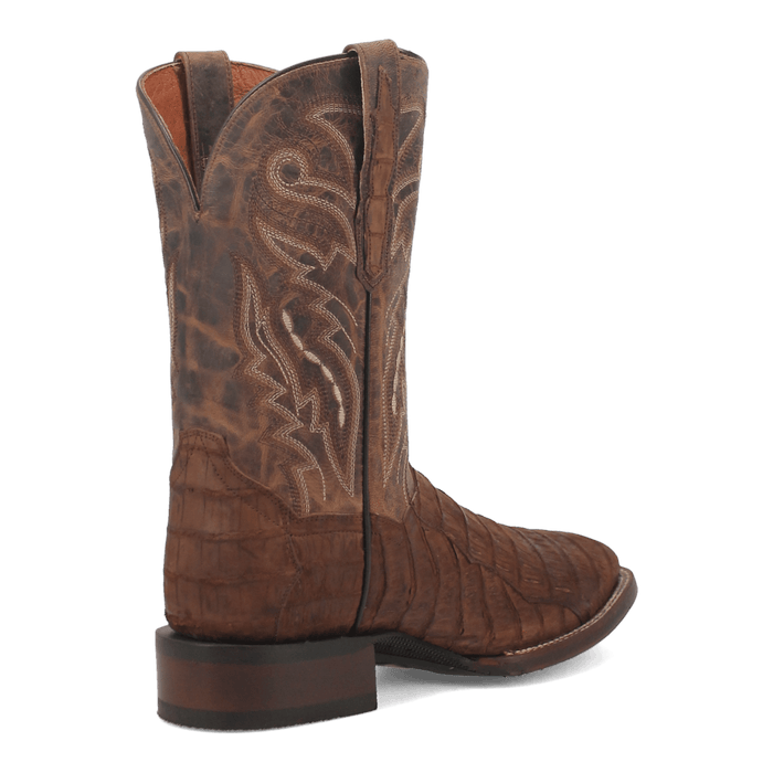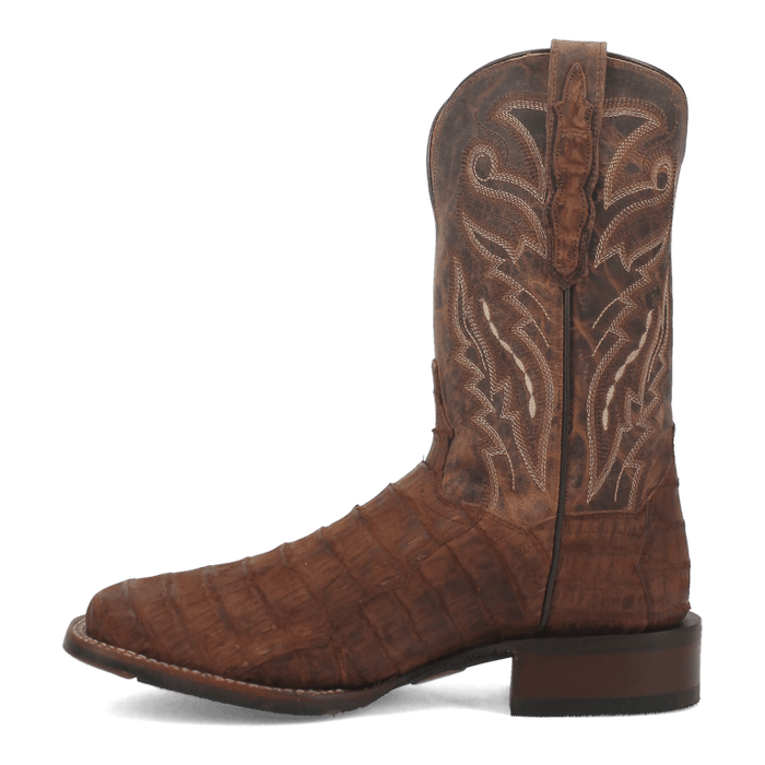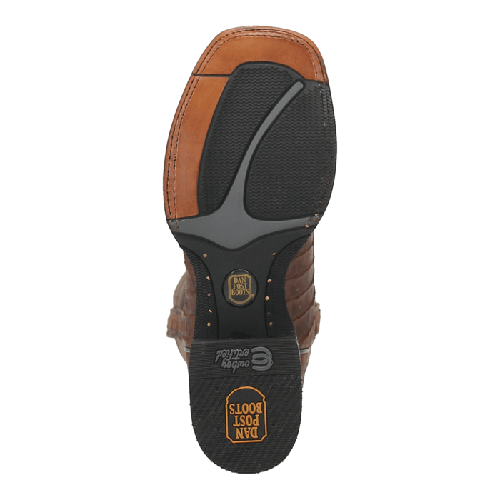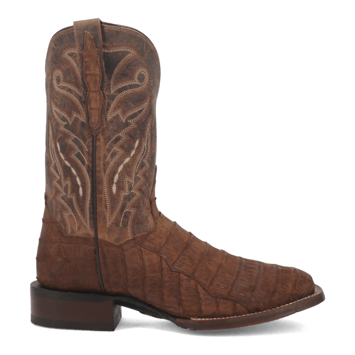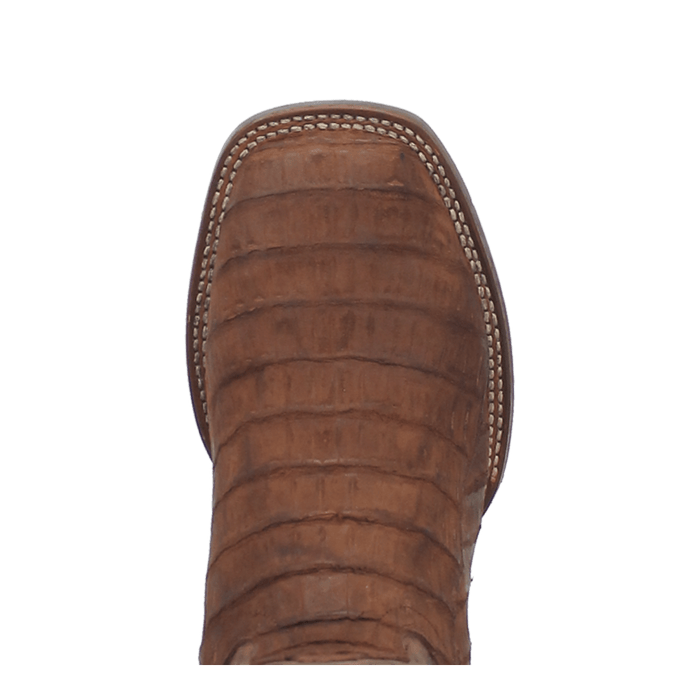 Caiman is one of the most popular skins for exotic boots. The tile design is elegant and unique. Rich color caiman foot with contrasting multi-row stitched top. The pull-straps are also accented with matching caiman. Popular broad square toe, leather lining, stockman heel and Cavvy rubber outsole. Removable soft Strike Orthotic for all day comfort. Handcrafted Cushion Comfort by Dan Post.