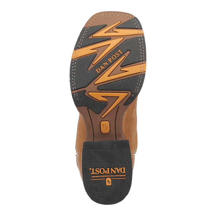 Crafted from the best bison leather, the Dugan boot in camel from Dan Post Cowboy Certified is in a league of its own. Along with its eye-catching stitching, the Dugan features a broad square toe, stockman heel, Soft Strike Removable Orthotic and a bone crusher runner outsole.