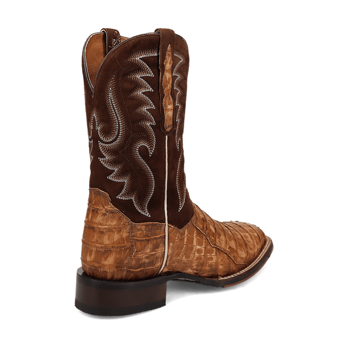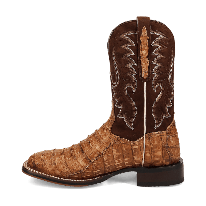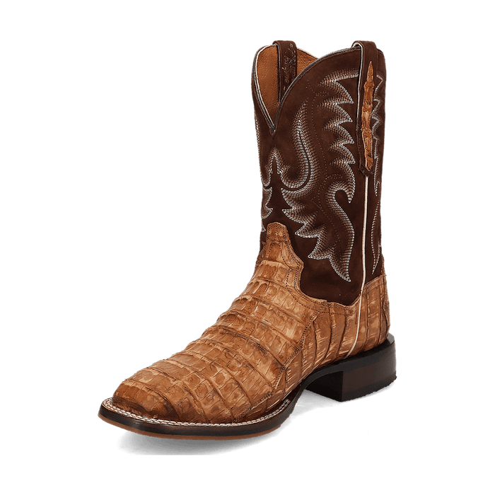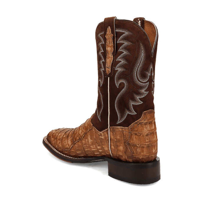 The Cowboy Certified Leon boot from Dan Post seamlessly blends contemporary and Western flair. Handcrafted from genuine caiman leather, this 11-inch boot features a removable soft strike orthotic, ROM toe, and stockman heel—making it the perfect choice for both long days on the ranch and stylish outings in town.