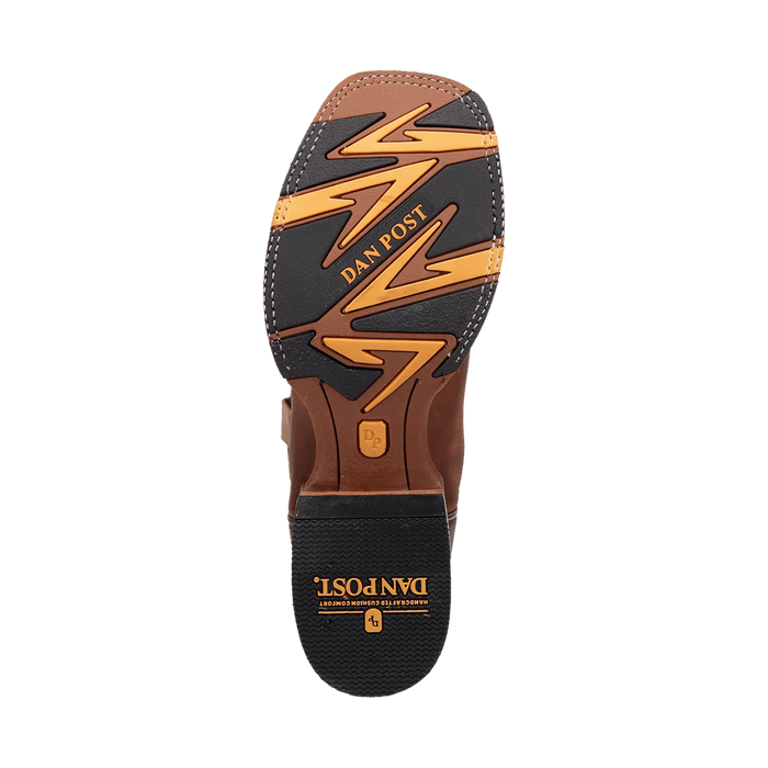Step out in the Jenks stockman boot from Dan Post for all day comfort. Featuring removable soft strike orthotic, broad square toe, rubber outsole, and stockman heel best suited for long days on the ranch.