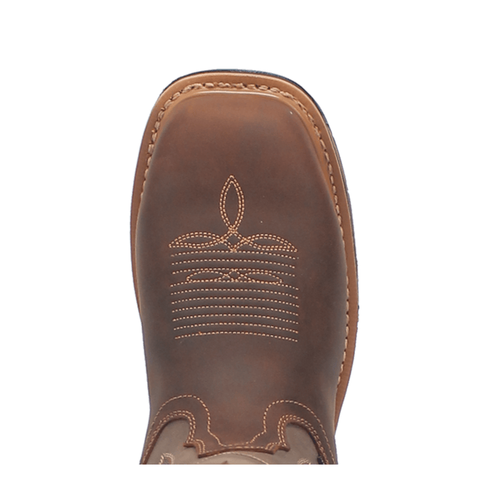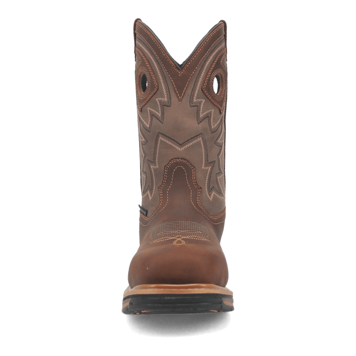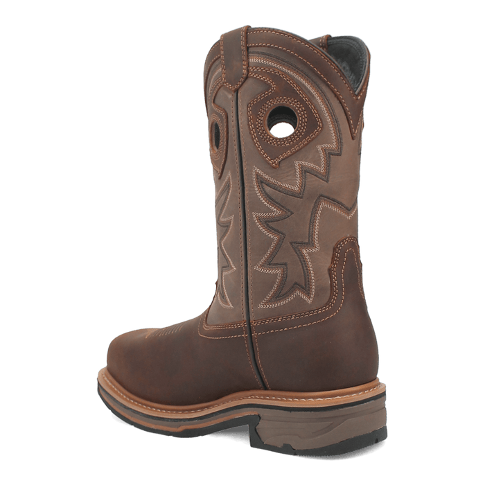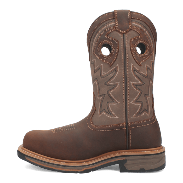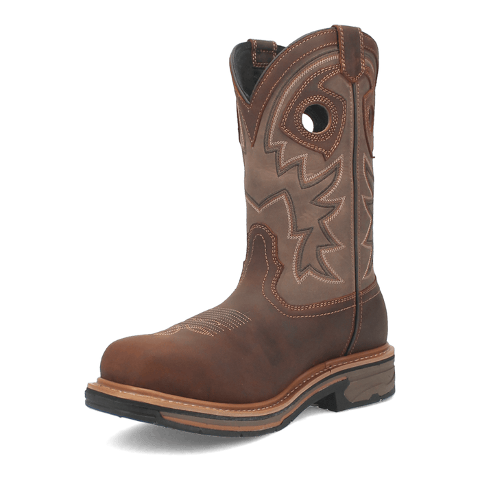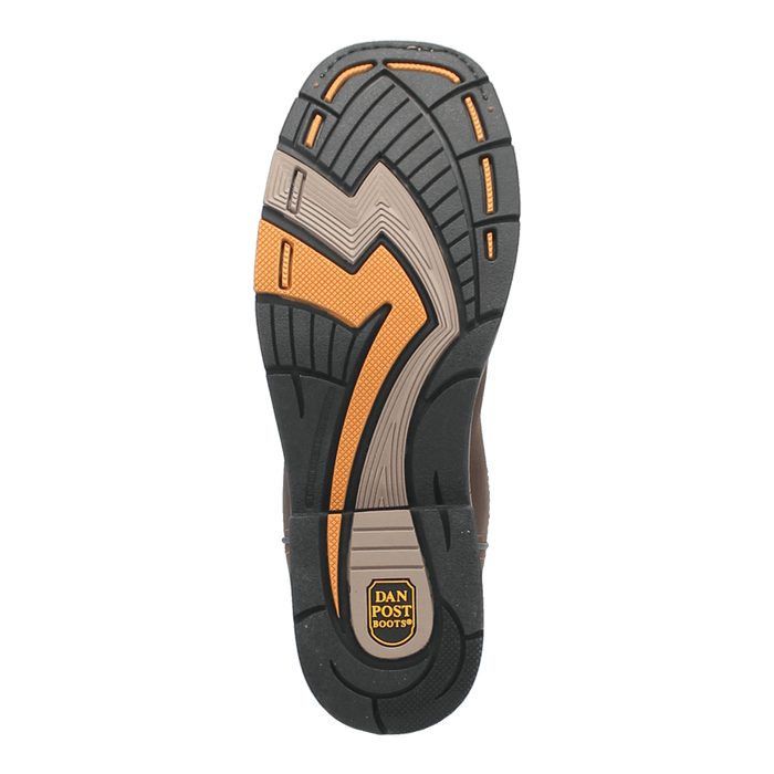 The Dan Post Work Certified Kirk boot is all-leather and all-weather. This boot comes with a broad square soft toe, along with a low walking heel. This 11-inch work boot also features a removable orthotic insert and an oil, heat and slip-resistant Hurricane 3 rubber outsole for the best in handcrafted comfort.